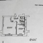 Общая площадь 33,5м2, жилая площадь 18,4м2.