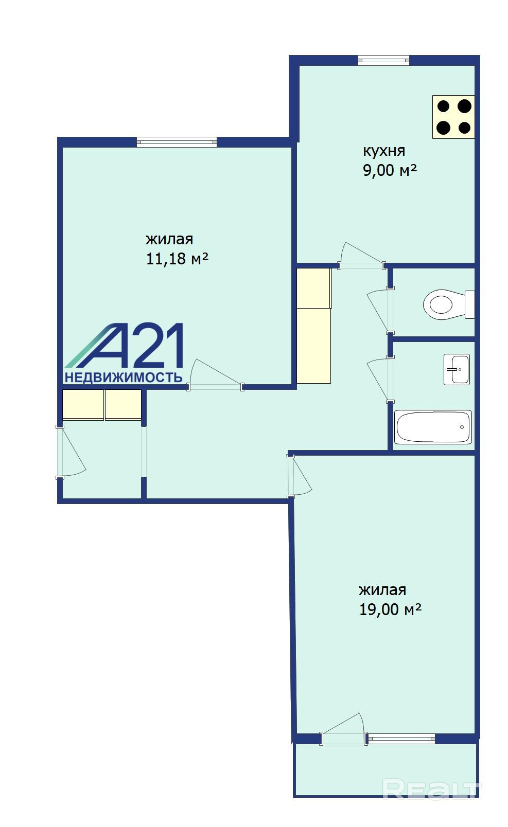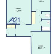 Общая площадь - 56, 53 кв. м, Жилая- 30,18 кв. м, Кухня - 9 кв. м,