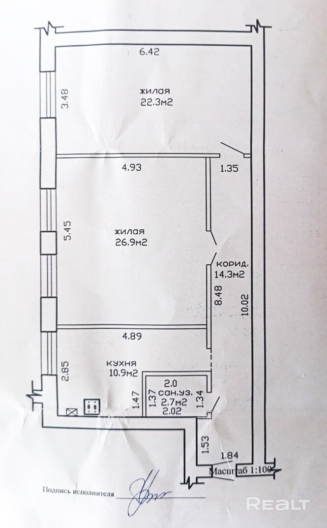 Она расположена на комфортном 2-м этаже 3-х этажного дома 1956 года постройки. Общая площадь квартиры 77.1 кв.м., жилая площадь 49.2 кв.м. Кухня 10.9 кв.м. Санузел совмещенный. Высота потолков 3.20 м. Планировка квартиры соответствует техническому паспорту. Перекрытия деревянные. Большая площадь позволяет воплотить любые дизайнерские решения.