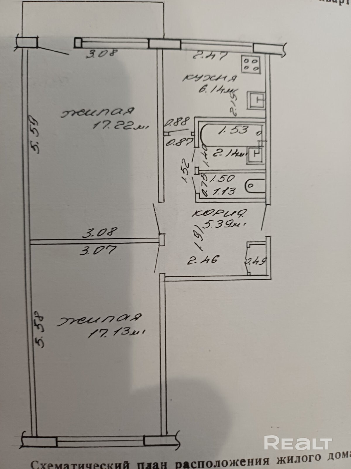 Купить 2-комнатную квартиру, г. Гомель, просп. Октября, 61/-