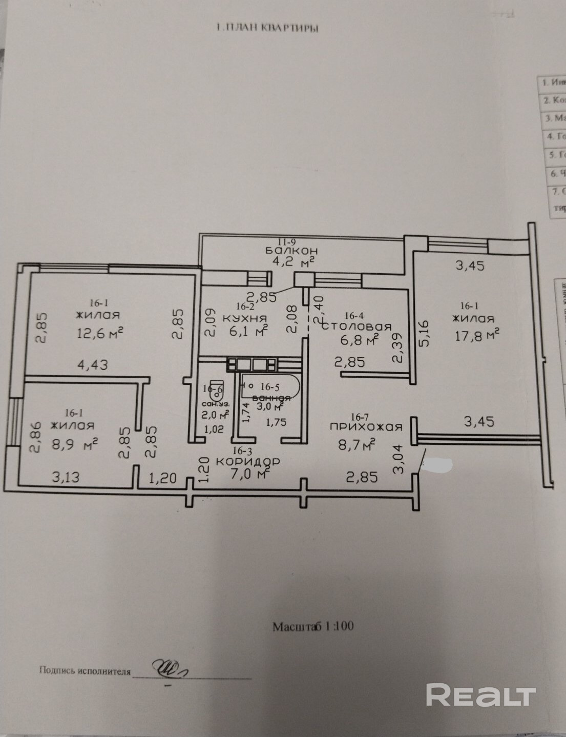 - Площадь жилая