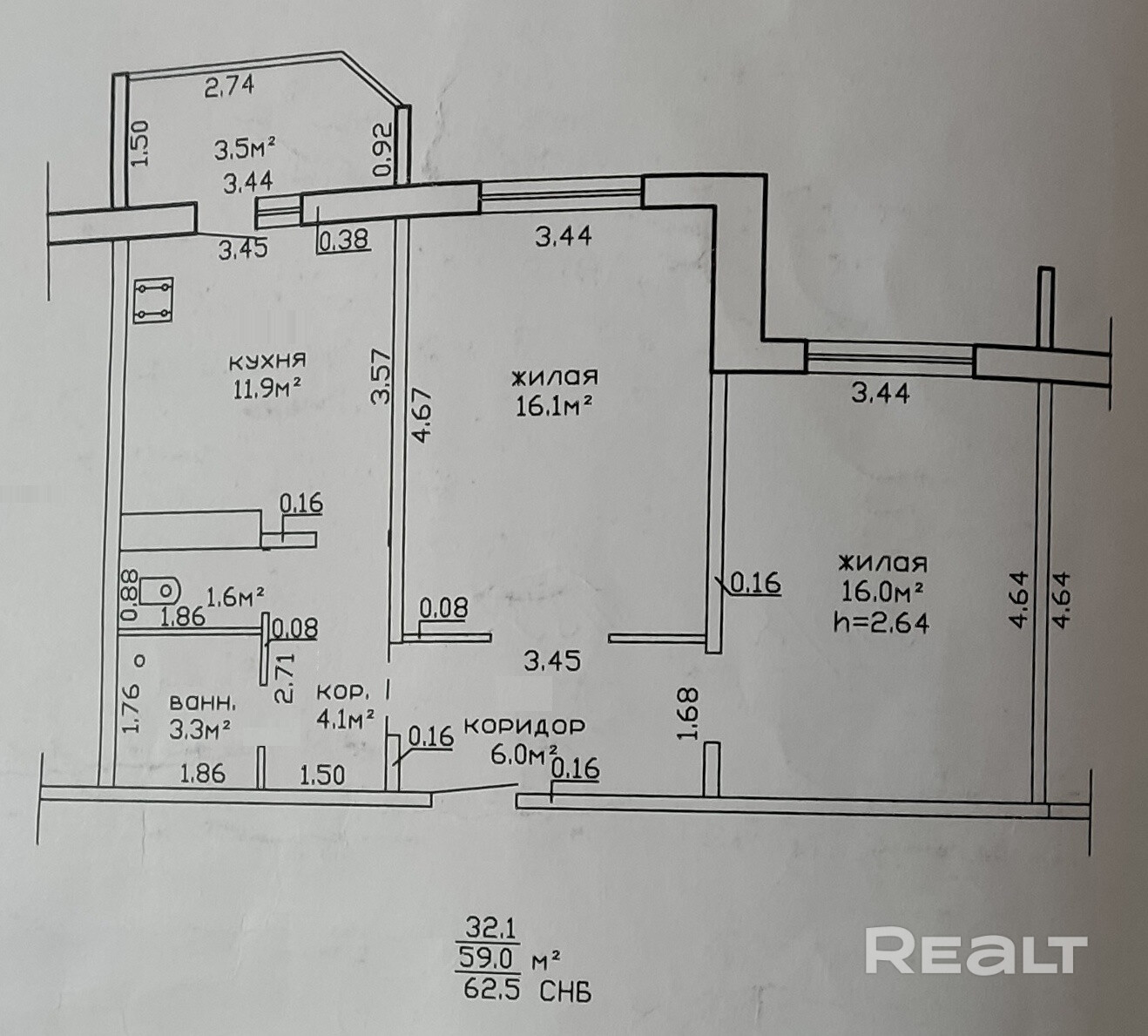 Ищем новых хозяев для большой уютной 2-комнатной квартиры с отличной планировкой и всем необходимым для комфортной жизни. Расположена на 3 этаже 10-этажного панельного дома с двумя просторными жилыми комнатами по 16 кв.м. и кухней 11.9 кв.м., раздельным санузлом, деревяннми стеклопакетами. Высота потолков 2,64м. Частично с ремонтом - на полу ламинат и плитка, неплохие межкомнатные двери. В доме грузовой лифт. Рядом магазин Санта и Соседи, детский сад во дворе. Торг реальному покупателю.