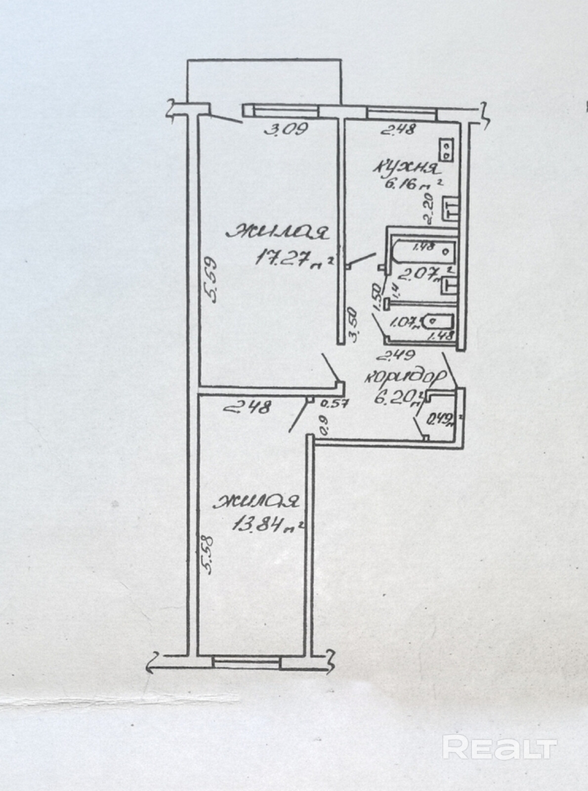 Преимуществом планировки являются: раздельные комнаты, раздельный санузел и наличие застекленного балкона. Окна выходят во двор.