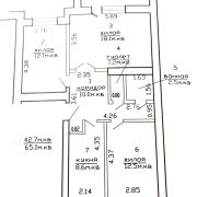 Квартира расположена на третьем этаже пятиэтажного кирпичного дома 1995 года постройки. Общая площадь составляет 65 кв.м., жилая 42.7 кв.м., кухня 8.6 кв.м. Санузел раздельный.