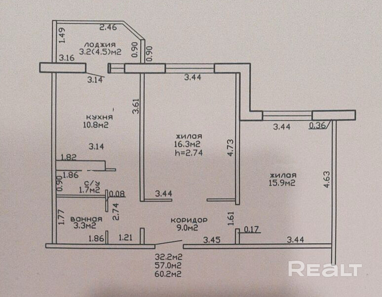 32.2 м²