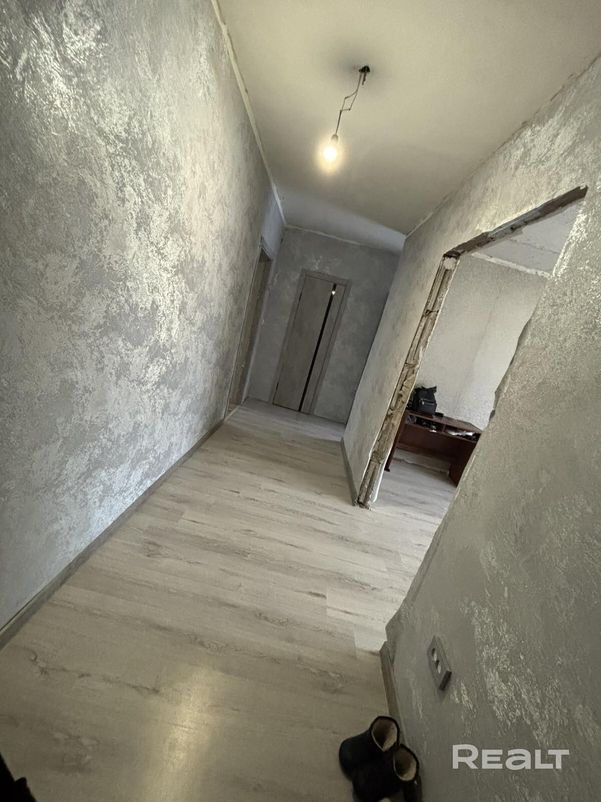 В квартире уже выполнены самые трудоемкие и дорогостоящие работы: Произведена качественная стяжка пола по всему периметру. В жилых комнатах уложен современный ламинат, на кухне — практичная и долговечная плитка. Все стены профессионально выровнены.