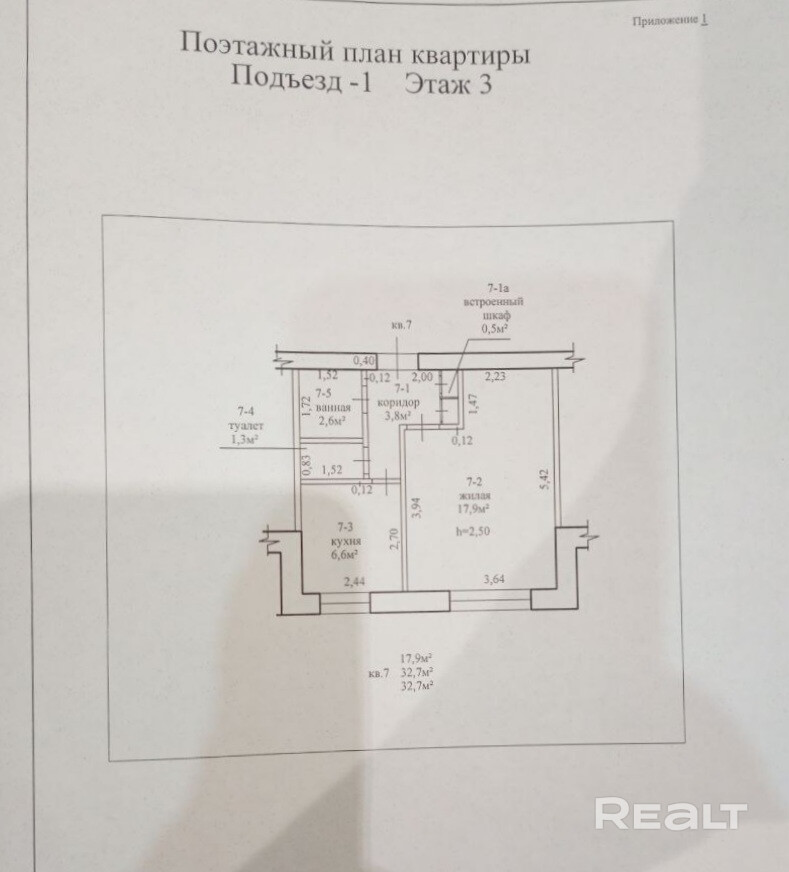 • Общая площадь: 32.7 кв. м.