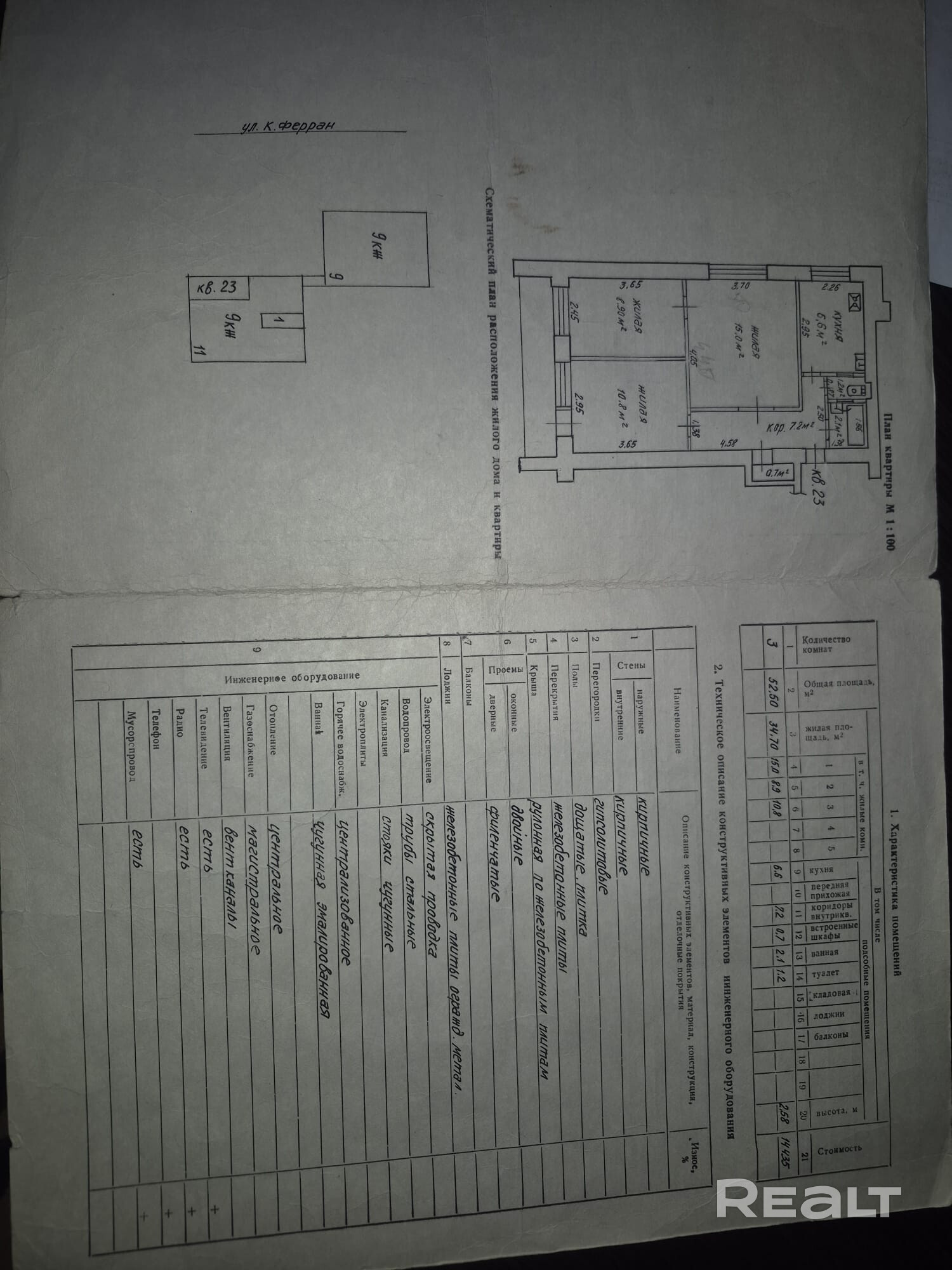 - Площадь жилая