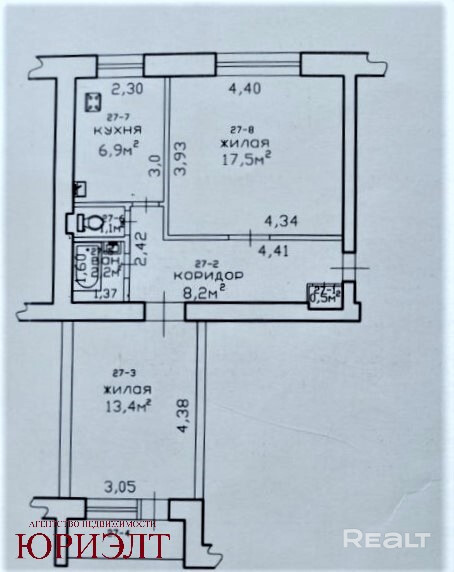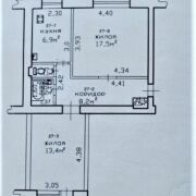Продается 2-комнатная квартира в кирпичном доме. Общая площадь 49,8 м2, жилая 30,9 м2, кухня 6,9 м2. Комнаты раздельные 17,5 м2 и 13,4 м2. Просторный коридор 8,2 м2.