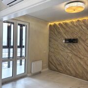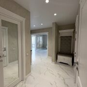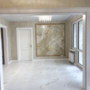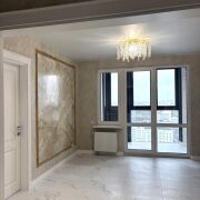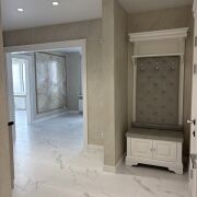 Авторский дизайн, интерьер выполнен по индивидуальному проекту. Использованы отделочные материалы премиум-класса ,на стенах венецианская штукатурка ,на полу ламинат и плитка,оштукатуренные потолки .