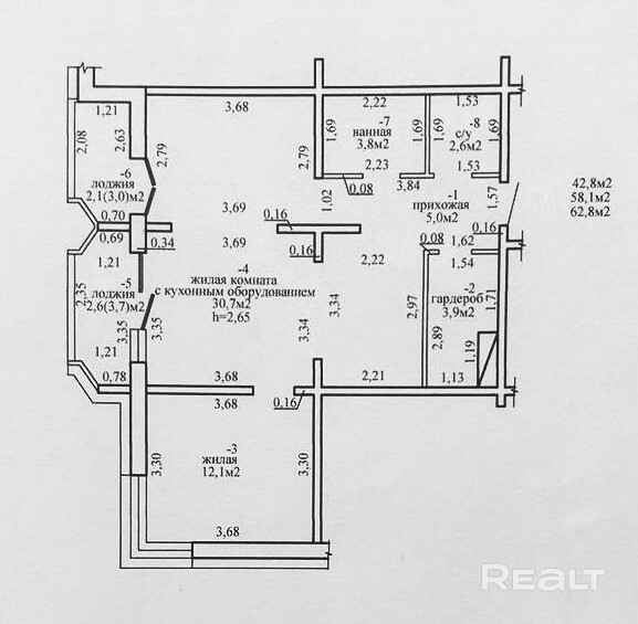 62.8 м²