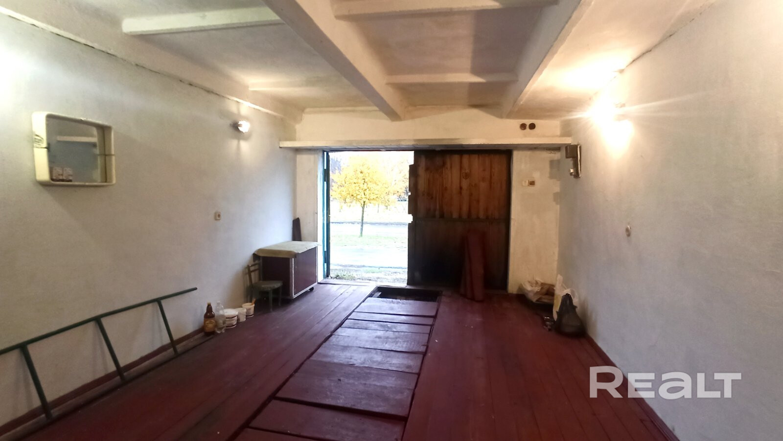 Гараж оборудован металлическими воротами, что обеспечивает надежную защиту и легкий доступ. Внутри вы найдете бетонный погреб, который идеально подходит для хранения продуктов или других вещей, требующих особых условий.