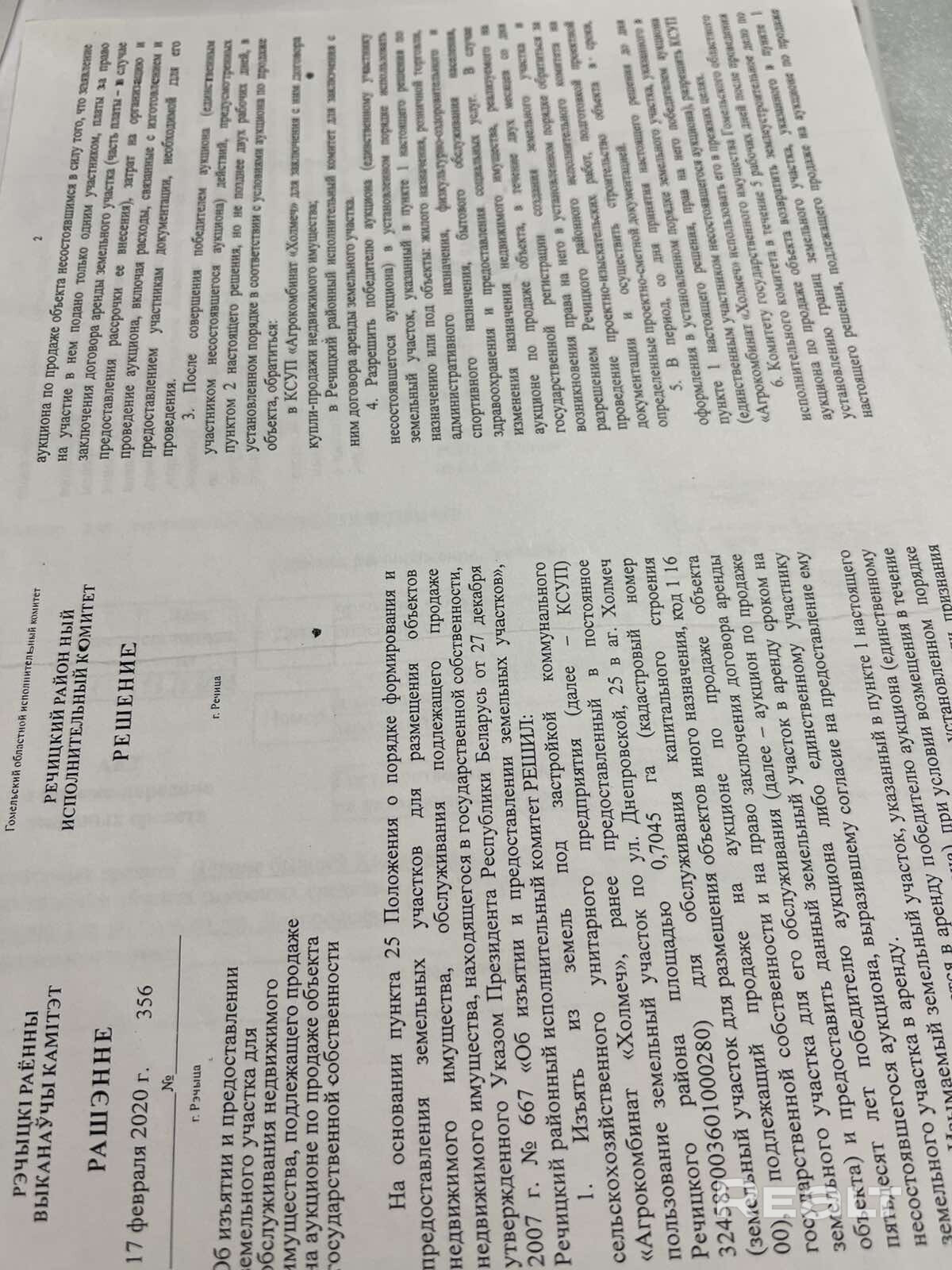 Купить участок, аг. Холмеч, ул. Днепровская, 25 (Речицкий р-н, Гомельская область)