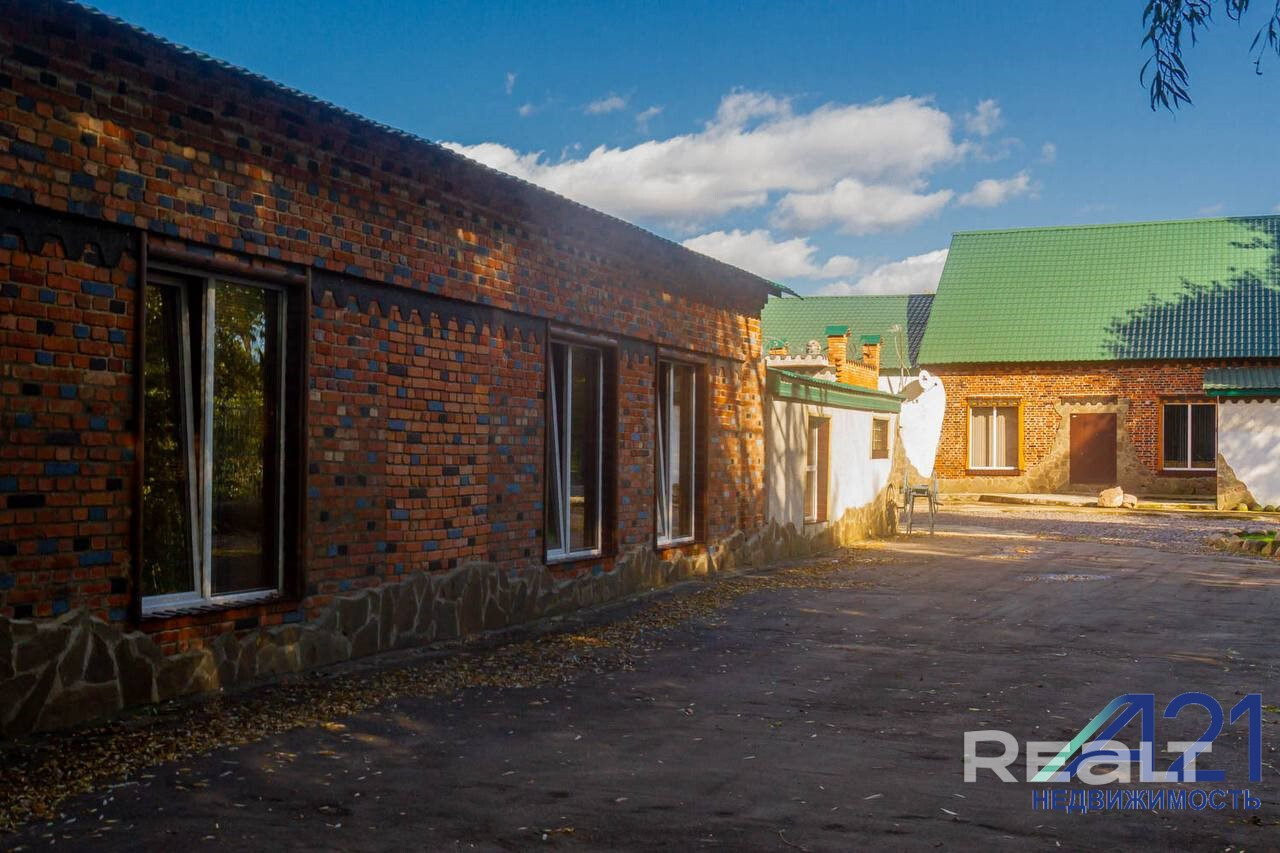 : 1. здание общежития ( площадь 780 кв. м.), жилое с отоплением ( своя котельная), ванными комнатами ( 4шт), отдельными изолированными комнатами( 14 шт), закрывающимися на замок, кухни ( 3 шт ), хороший ремонт, мебель. Материал стен – кирпич, материал крыши – металлочерепица, материал полов – бетон/керамическая плитка.2. здание – ресторана (площадь 600 кв. м.) с большим залом и отдельными комнатами, двумя отдельными ванными комнатами, двумя кухнями. Материал стен – кирпич, материал крыши – металлочерепица, материал полов – бетон/керамическая плитка. По всему периметру участка большой кованный забот ( высота 3 метра), облагороженная территория. Цена и условия оговариваются. Агентство "А21 недвижимость центр услуг" является действующим членом Белорусской ассоциации недвижимости. Гарантия качества. Безопасность.