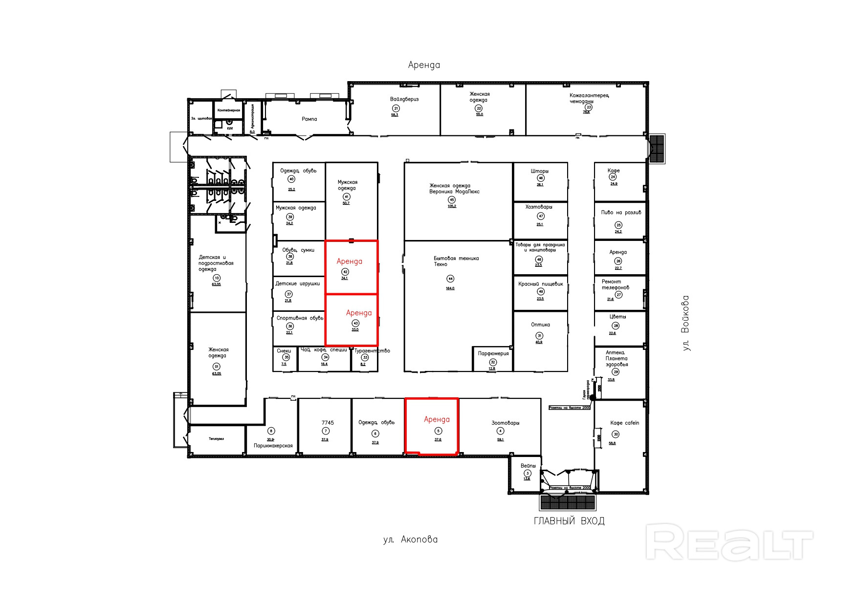 Аренда в ТЦ "19 квартал" в г. Жлобин.