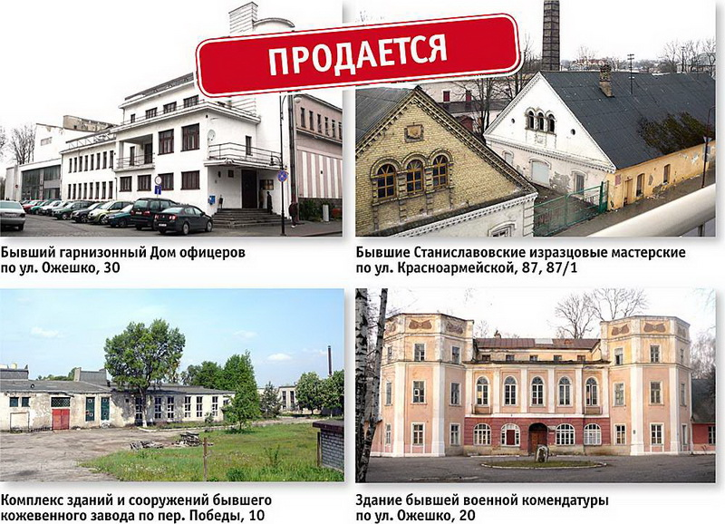 Сейчас готовится на продажу здание бывшей военной комендатуры по улице Ожешко, 20, а некогда дворца князей Четвертинских. Год постройки — 1786. В городе разделились мнения историков и краеведов о дальнейшей судьбе исторической постройки. Были предложения открыть здесь после реконструкции Дворец бракосочетаний, перенеся загс с улицы Ожешко. Однако последнее слово скажет инвестор. Начальная цена продажи — 3,13 миллиона рублей.