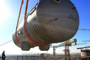 Каждый из парогенераторов весит по 330 тонн. Строители успешно справились с задачей: подняли его на специальную эстакаду, ввезли по рельсам в помещение реактора и установили на уровне +26,00 при помощи крана. Сейчас они готовятся к сварке главного циркулярного трубопровода.