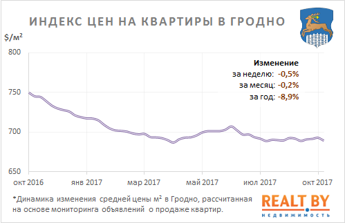За неделю с 9 по 16 октября информационно-аналитическим центром Realt.by были отмечены следующие изменения на первичном и вторичном рынках недвижимости города Гродно: