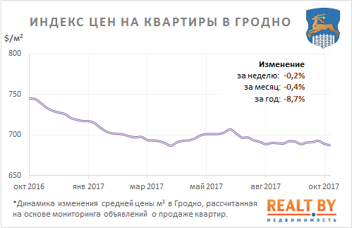 За неделю с 16 по 23 октября информационно-аналитическим центром Realt.by были отмечены следующие изменения на первичном и вторичном рынках недвижимости города Гродно: