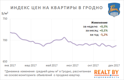 За неделю с 18 по 25 декабря информационно-аналитическим центром Realt.by были отмечены следующие изменения на первичном и вторичном рынках недвижимости города Гродно: