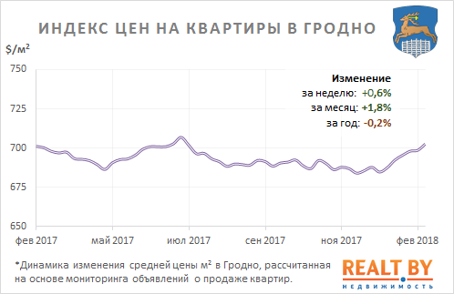 За неделю с 5 по 12 февраля информационно-аналитическим центром Realt.by были отмечены следующие изменения на первичном и вторичном рынках недвижимости города Гродно: