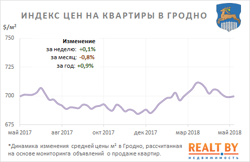 За неделю с 14 по 21 мая информационно-аналитическим центром Realt.by были отмечены следующие изменения на первичном и вторичном рынках недвижимости города Гродно: