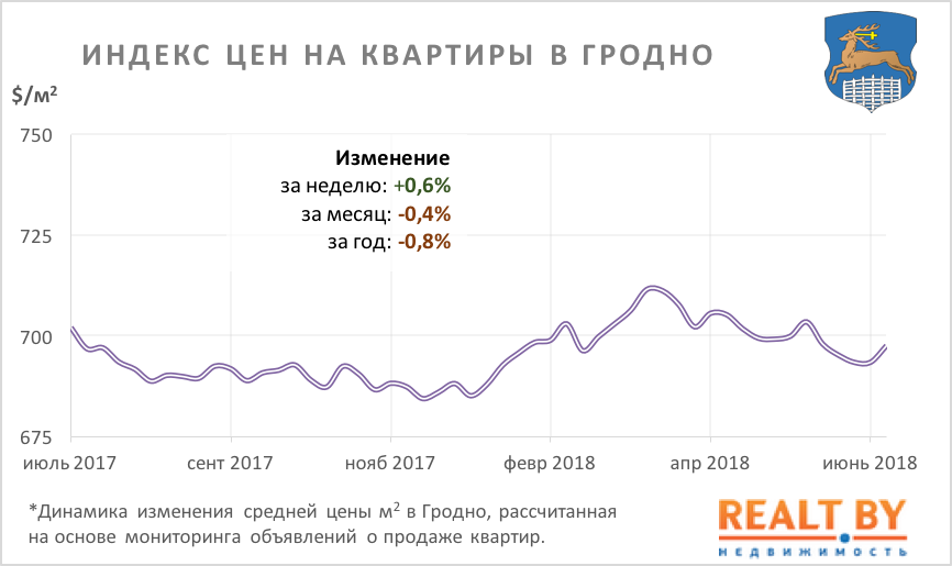 За неделю с 25 июня по 2 июля информационно-аналитическим центром Realt.by были отмечены следующие изменения на первичном и вторичном рынках недвижимости города Гродно: