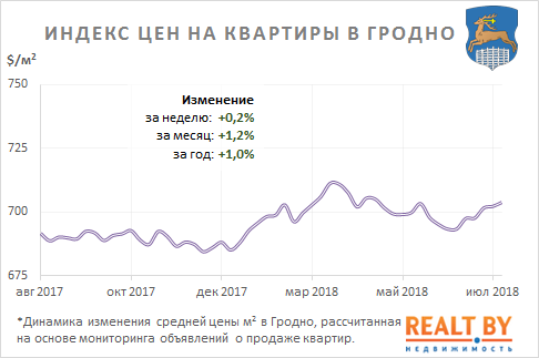 За неделю с 23 по 30 июля информационно-аналитическим центром Realt.by были отмечены следующие изменения на первичном и вторичном рынках недвижимости города Гродно: