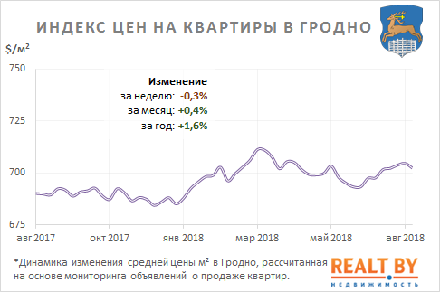 За неделю с 6 по 13 августа информационно-аналитическим центром Realt.by были отмечены следующие изменения на первичном и вторичном рынках недвижимости города Гродно: