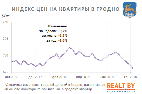 За неделю с 17 по 24 сентября информационно-аналитическим центром Realt.by были отмечены следующие изменения на первичном и вторичном рынках недвижимости города Гродно: