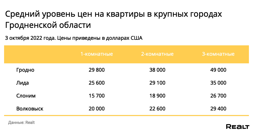 Мониторинг цен предложения квартир в Гродно и городах Гродненской области за 26 сентября — 3 октября 2022 года