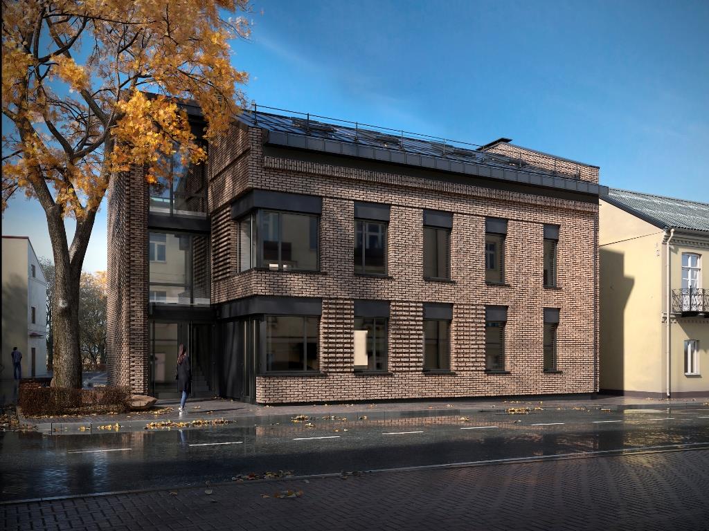 Трехэтажное здание на нескольких сотках вдоль тротуара Большой Троицкой в Гродно начали строить еще в конце 2023 года. Проектом занималась студия Intelstock Engineering. Объект возводили под нужды ТЦ. Главной целью было вписать здание в историческую застройку центра города. Архитекторы подошли ответственно: силуэт новостройки подстраивали под имеющееся дерево. Такое решение позволило организовать под его кроной пространство входной группы. Таким образом, дерево стало важной частью композиции.