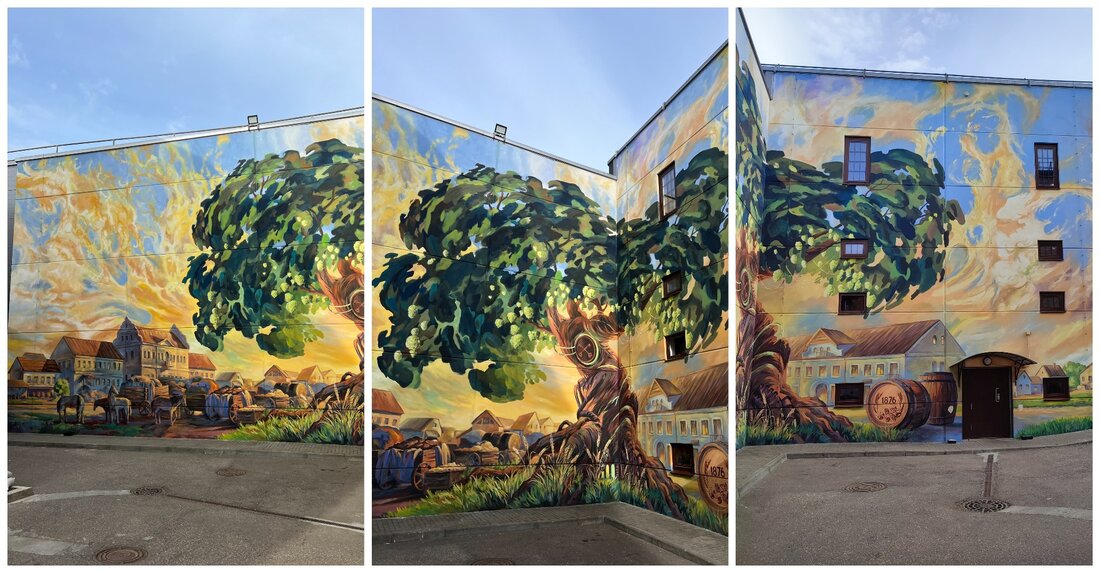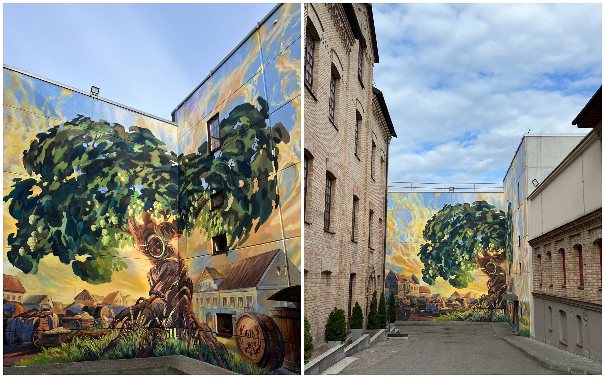 В центре мурала изображено фантастическое Древо Жизни, прорастающее из Рыночной площади Лиды. На фоне угадывается старинная Ратуша — утраченный памятник барочной архитектуры XVIII века, а также здание полицейского управления. Именно там когда-то открыл свой первый бар основатель Лидской пивоварни Носель Пупко.