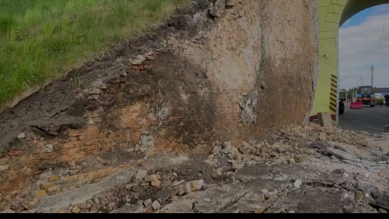 В Гродно обрушилась отделка стены моста в центре города. Пострадавших нет