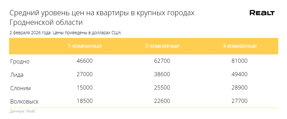 Продолжается рост средней стоимости за квадратный метр. Что произошло со стоимостью квартир в Гродно и области за 26 января — 2 февраля 2026 года