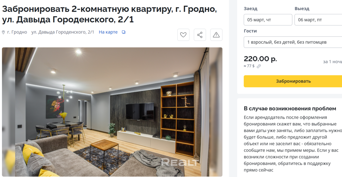 Мы просто вписали в сервисе Realt. Бронь желаемые даты для заселения в Гродно — и получили множество вариантов квартир на выбор. Конкретно эта квартира привлекла нас локацией — исторический центр города. Напротив располагаются драматический театр, Старый замок и набережная Немана. В шаговой доступности находятся популярные кафе и бары.