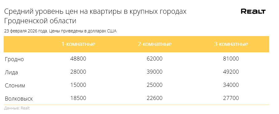 Цена квадрата на двушки пошла вниз. Что произошло со стоимостью квартир в Гродно и области за 16−22 февраля 2026 года