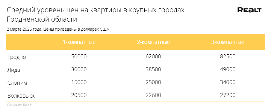 Квадрат для однушек резко подрос. Что произошло со стоимостью квартир в Гродно и области за 23 февраля — 1 марта 2026 года