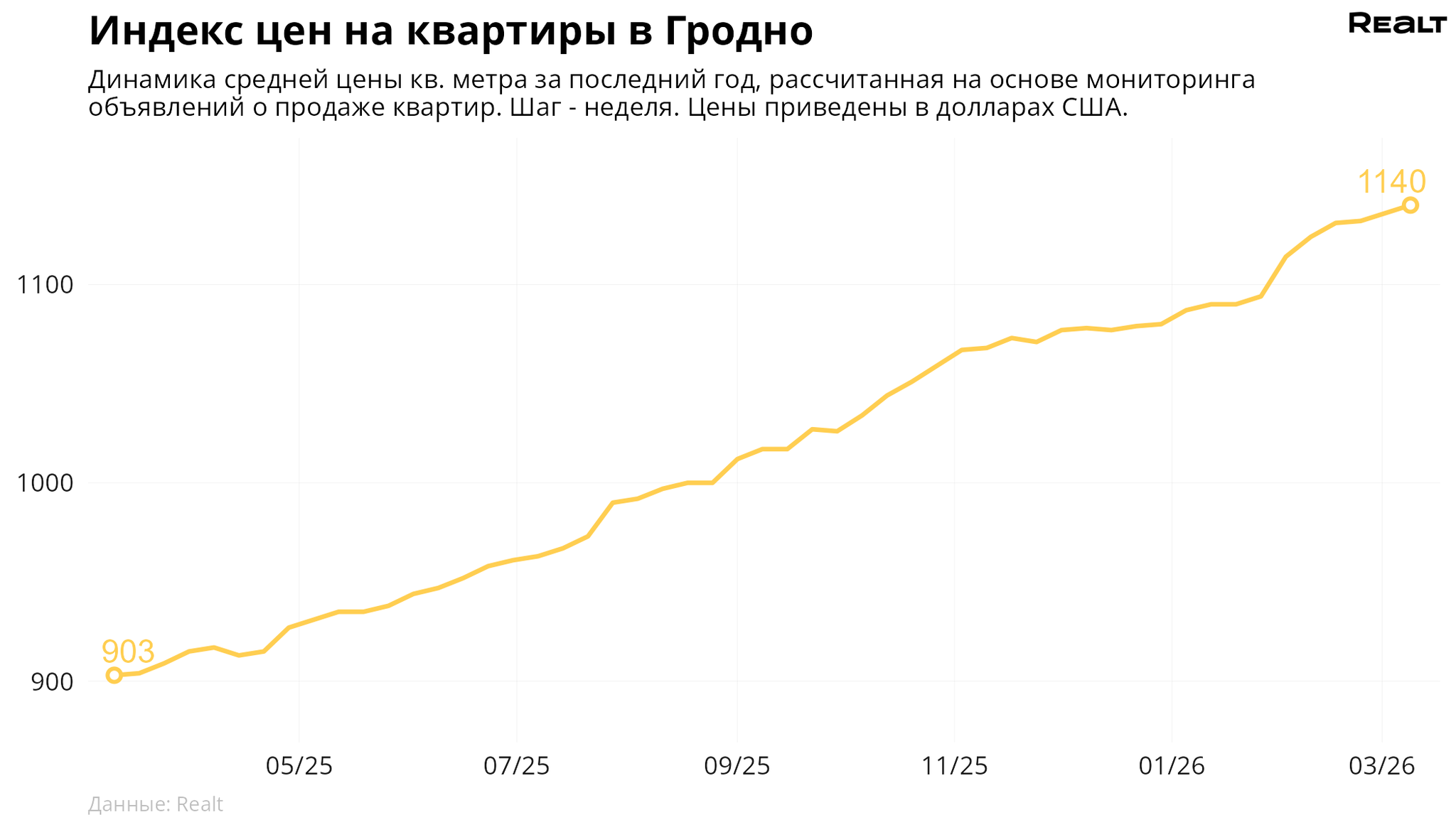 Могилев: 1090 $/м2 (+1%).