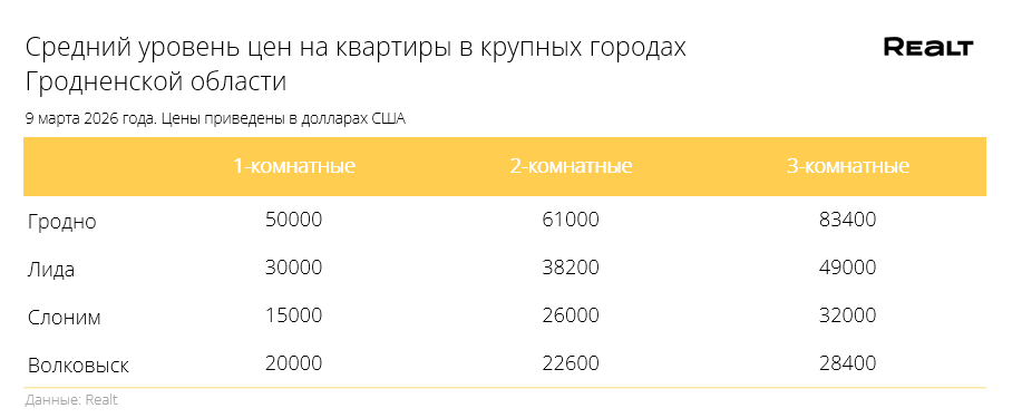 За год стоимость квадрата увеличилась на 28%. Что произошло со стоимостью квартир в Гродно и области за 2−9 марта 2026 года