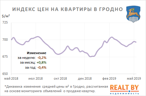 За неделю с 5 по 12 мая информационно-аналитическим центром Realt.by были отмечены следующие изменения на первичном и вторичном рынках недвижимости города Гродно: