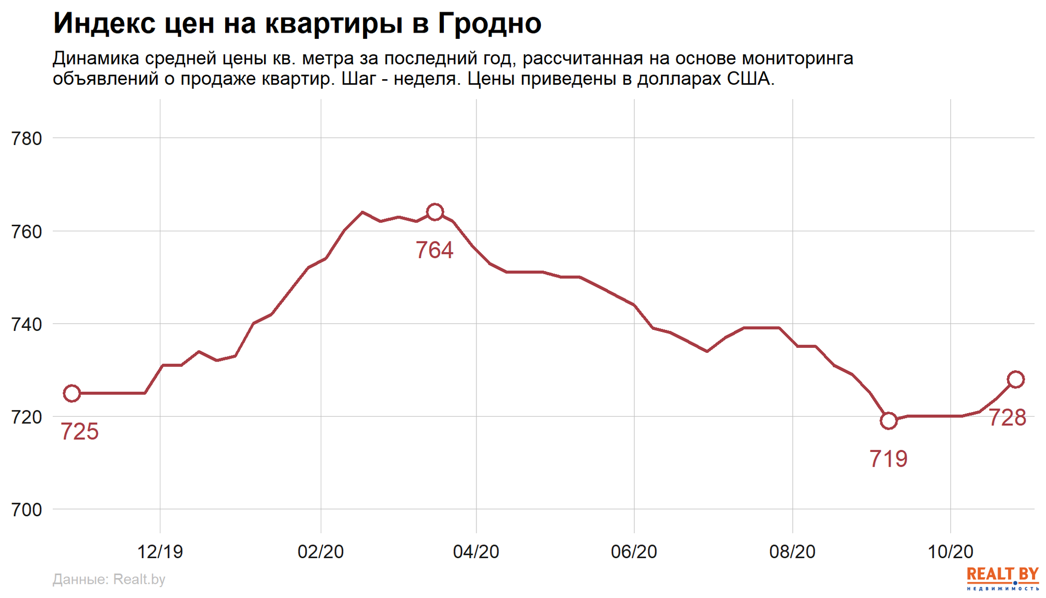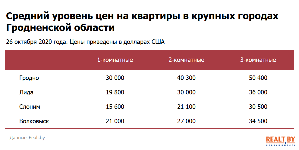 Мониторинг цен предложения квартир в Гродно и городах Гродненской области за 19−26 октября 2020 года
