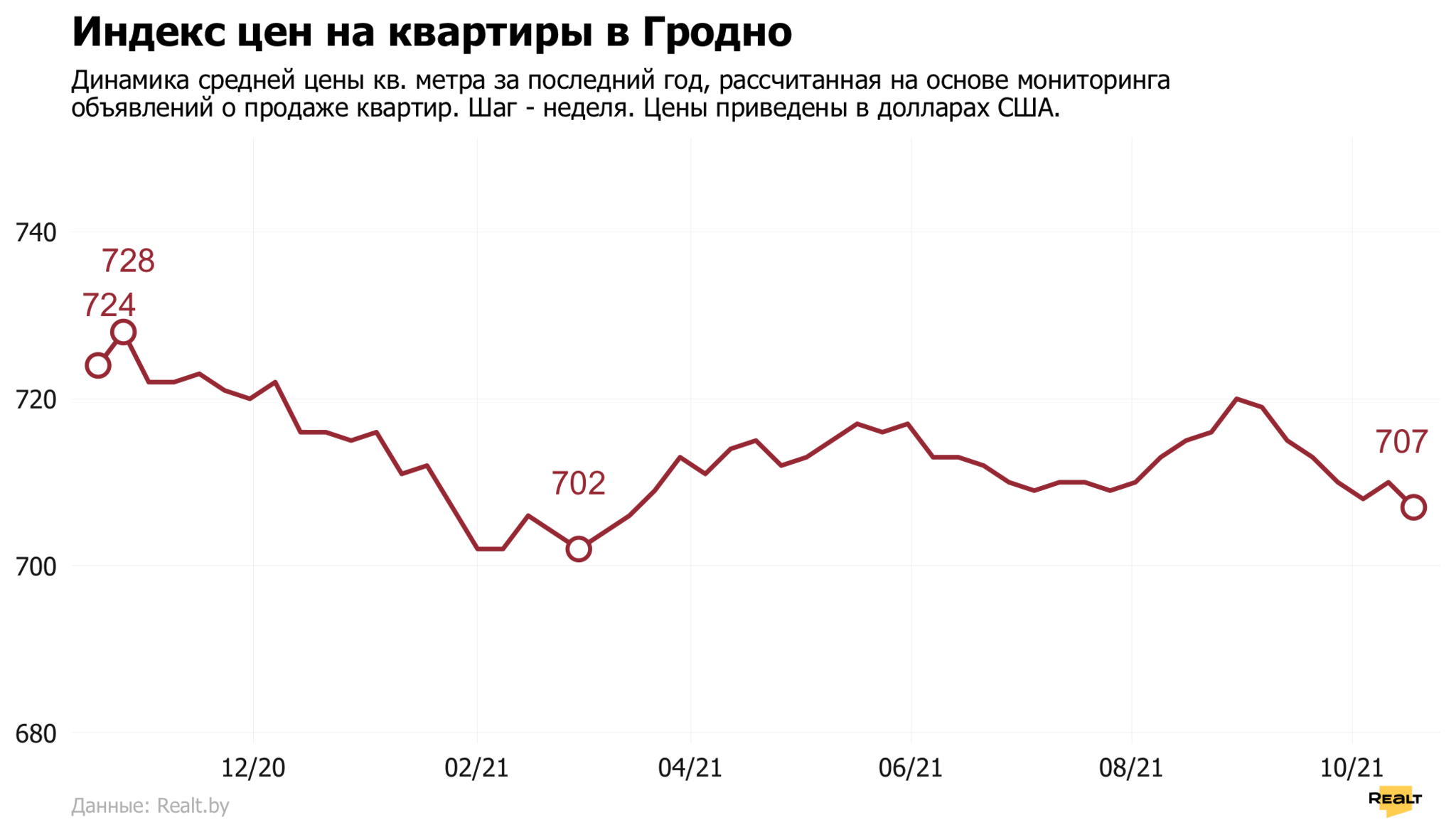 Мониторинг цен предложения квартир в Гродно и городах Гродненской области за 11−18 октября 2021 года