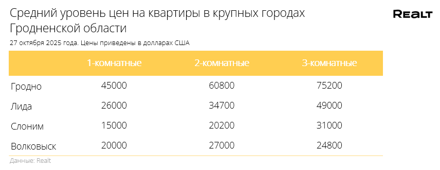 Однушки дешевеют. Что произошло со стоимостью квартир в Гродно и области за 20−27 октября 2025 года