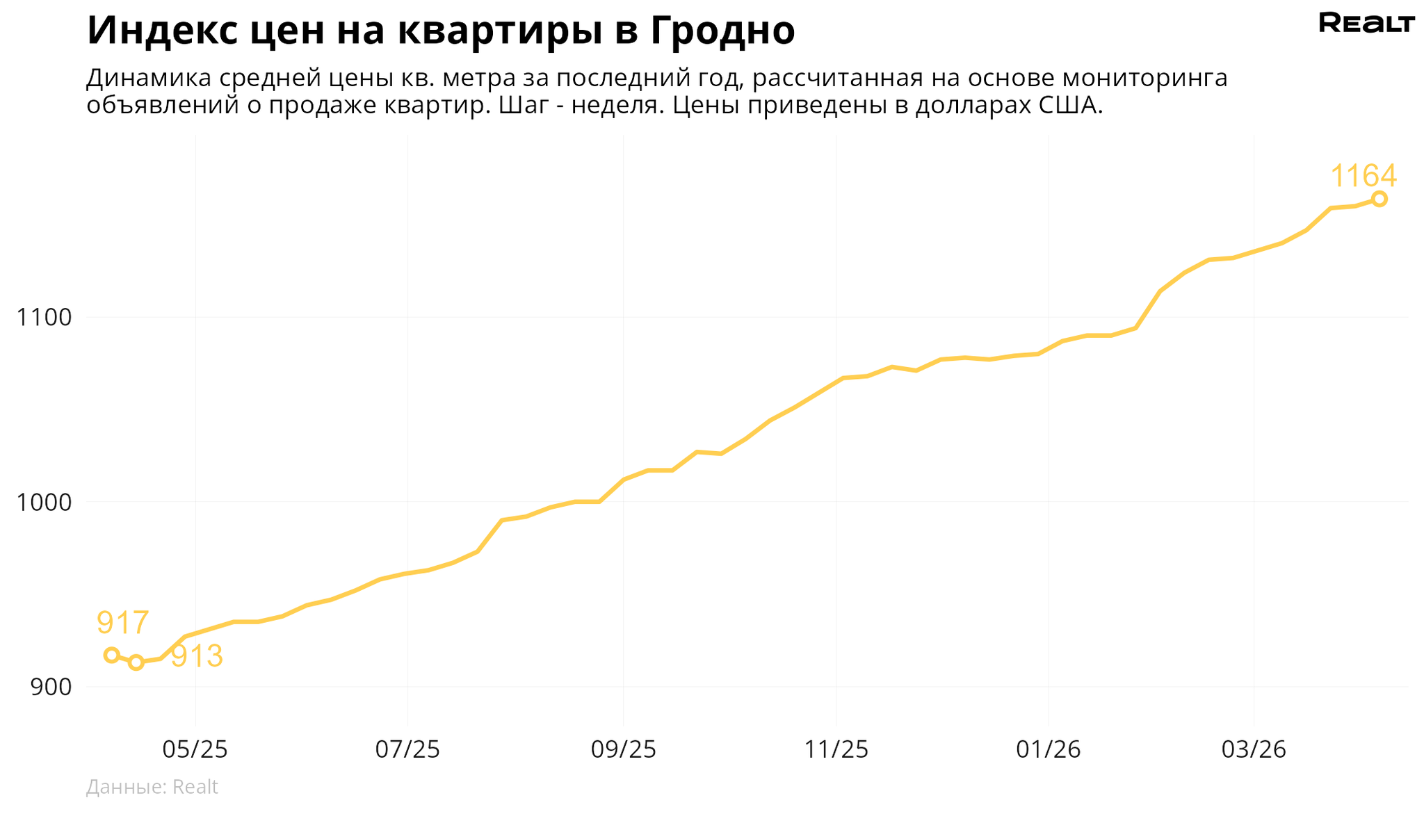 Могилев: 1107 $/м2 (+1.5%).