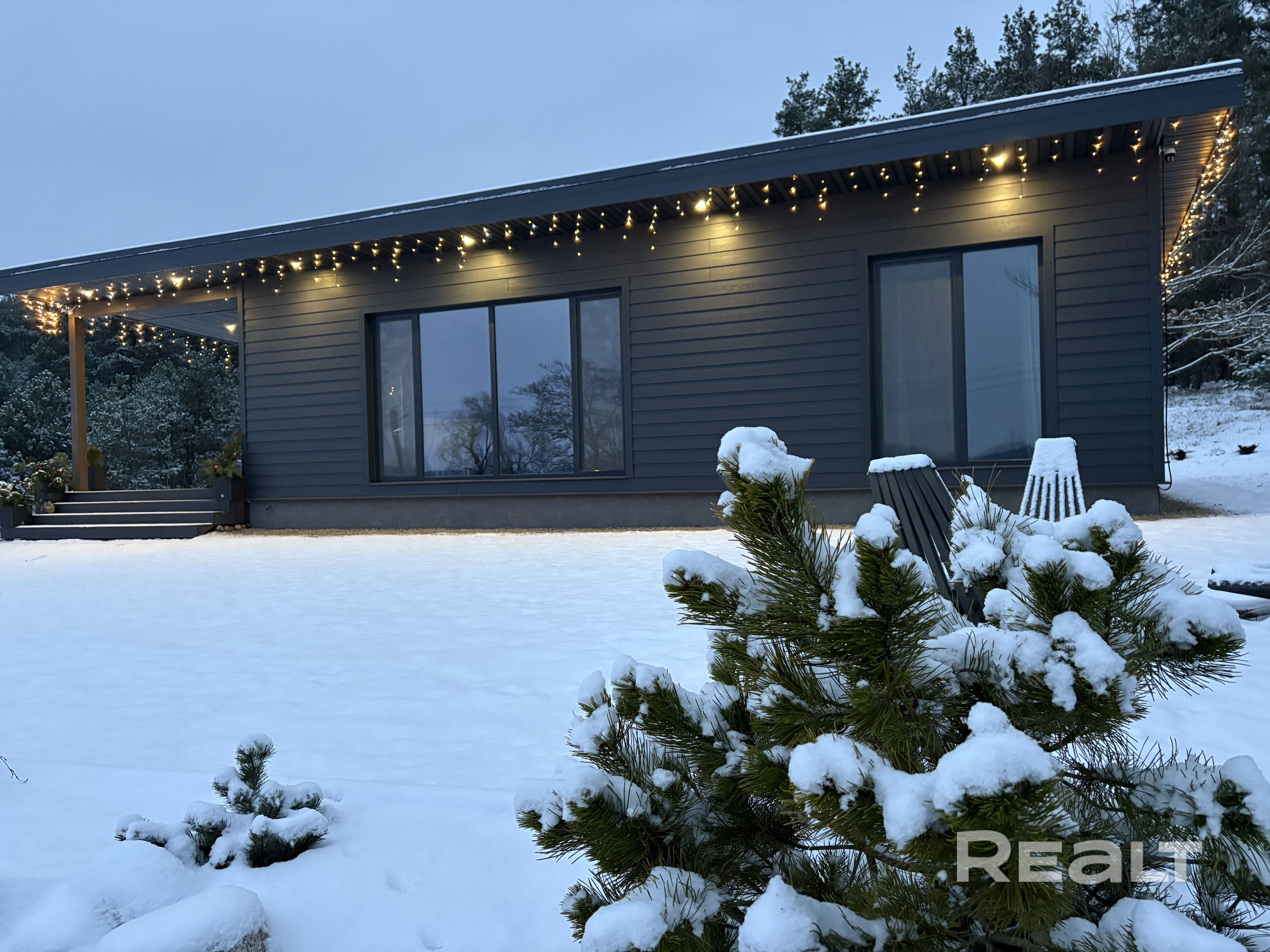 Новый просторный финский дом в 7 км от Гродно в сторону Августовского канала. В доме есть две полноценные спальни, большая гостиная open-space, совмещенная с обеденной зоной, с камином и панорамными окнами на всю стену. Расположен на большом участке в деревне не в СТ. Финская сауна на дровах находится непосредственно в доме в банном блоке, из которого есть отдельный выход на террасу и к сибирскому чану на дровах (оплачиваются отдельно). Цена указана за аренду дома на двоих в будний день!