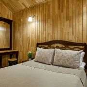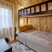 Каждый домик — это 56 м2 жилой площади, идеально подходящий как для пары, так и для большой семьи или компании до 7 человек. Внутри — две полноценные спальни, гостиная с кухней и современный санузел.