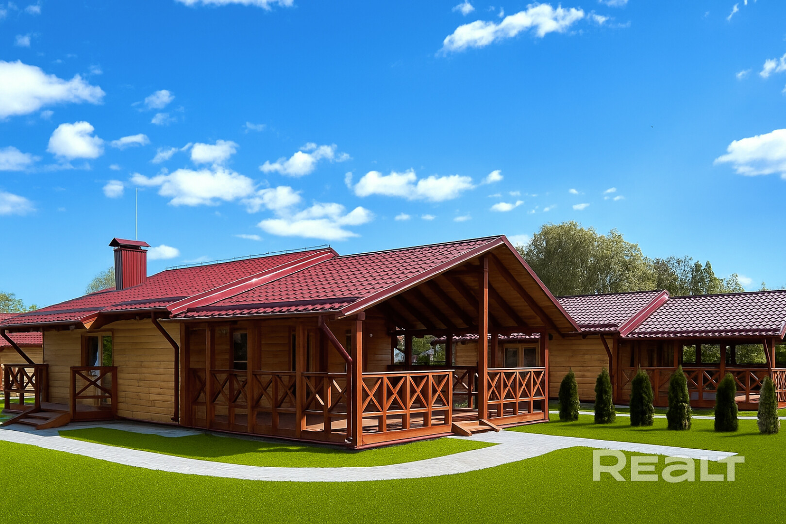 Ухоженные газоны, дорожки и оборудованная зона для барбекю — идеально для душевных вечеров с шашлыками или грилем на свежем воздухе.