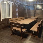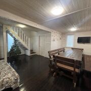 В доме есть всё для комфортного времяпрепровождения, полностью оборудована кухня, холодильник, микроволновая печь, посудомоечная машина, есть вся необходимая посуда и приборы, шампура, казан и решетки. Стол на первом этаже рассчитан на 14 посадочных мест. Спальных мест 8. Крытая и защищенная от ветра терраса так же рассчитана на 14 посадочных мест .Безлимитный интернет, телевидение, большая терраса. Во дворе оборудована многофункциональная барбекю зона, а так же деревянные качели.