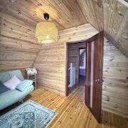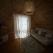 В доме 3 раздельных комнаты. На первом этаже гостиная с большим раскладывающимся диваном, на втором этаже 2 спальни раздельные с дверьми.
